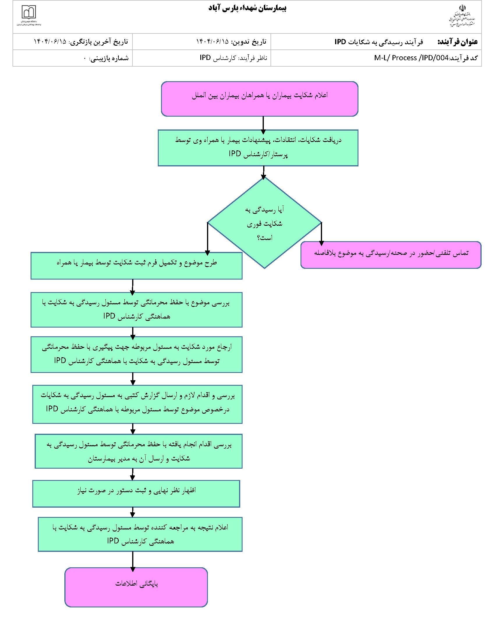 رسیدگی به شکایات بیماران بین الملل تعداد بازدید:۵۸ ارسال به دیگران نام شما ایمیل شما ایمیل دریافتکننده ارسال انصراف
